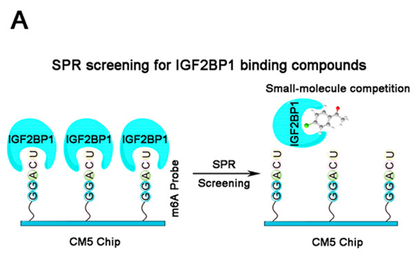 圖4:Biacore實(shí)驗(yàn)明確葫蘆素B抑制IGF2BP1與ss m6A的結(jié)合